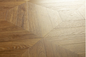 - Якщо ви хочете підкреслити текстуру та кожен стик французької ялинки (шеврон), укладайте її так, щоб світло з вікна падало вздовж «швів» малюнка. Це створить ефектну гру тіней.